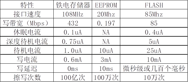 Flash的讀寫速度較慢,每次寫操作都必須進(jìn)行擦寫,因此完成一次寫操作至少需要幾百毫秒的時(shí)間,擦寫次數(shù)也只能支持10萬次, 遠(yuǎn)遠(yuǎn)低于1.1億次的要求,數(shù)據(jù)保持能力在10年到20年之間。