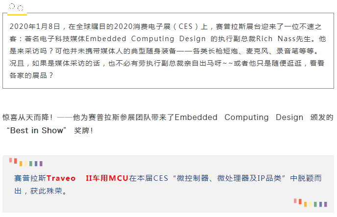 | CES聚光燈:賽普拉斯Traveo II車用MCU榮獲“Best in Show”大獎 |
