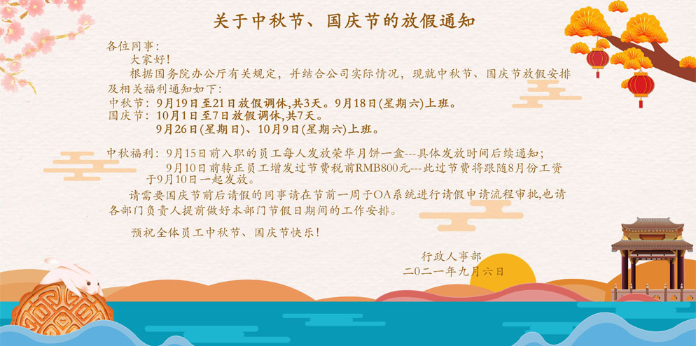 | 上一篇: 關于2023年五一勞動節放假通知 下一篇: 關于2021年端午節放假通知 |