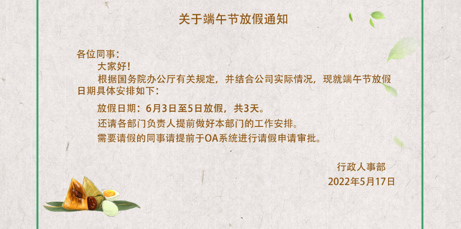 | 上一篇: 關于2023年五一勞動節放假通知 下一篇: 關于2022年度清明節放假通知 |